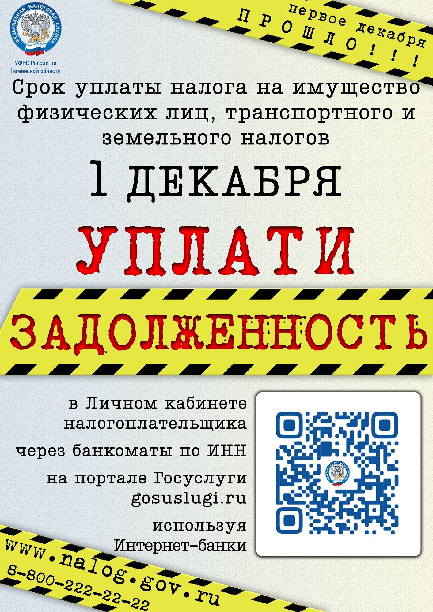 1 декабря 2025 наступил срок уплаты имущественных налогов! |