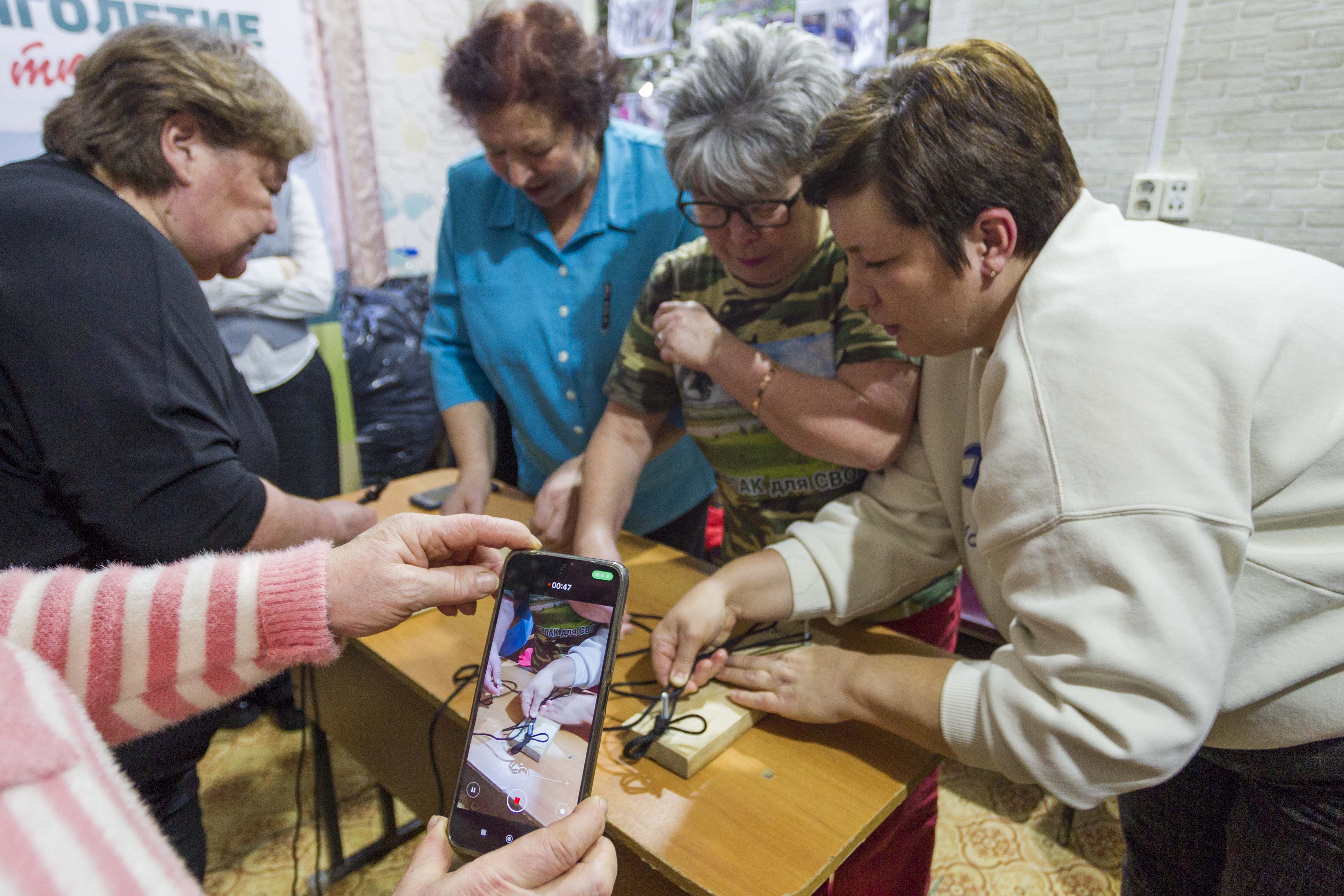 Вместе с участниками волонтёрских групп «Серебряные нити СВО» и «Всё для Победы!» из Ворогушино, «СВОи рядом» из Бизино на очередной отправке гуманитарной помощи присутствовали также серебряные волонтёры из Абалакского, Полуяновского поселений, а также специалисты комплексного центра социального обслуживания населения Тобольского муниципального округа. А приехали гости сюда на итоговый мастер-класс по изготовлению костюма «Лешего» и «Браслета выживания», который прошёл в рамках завершения грантового проекта АНО «Центр социальной помощи «Дом добра». Его инициаторами ранее выступили активисты объединения «Серебряные нити СВО».