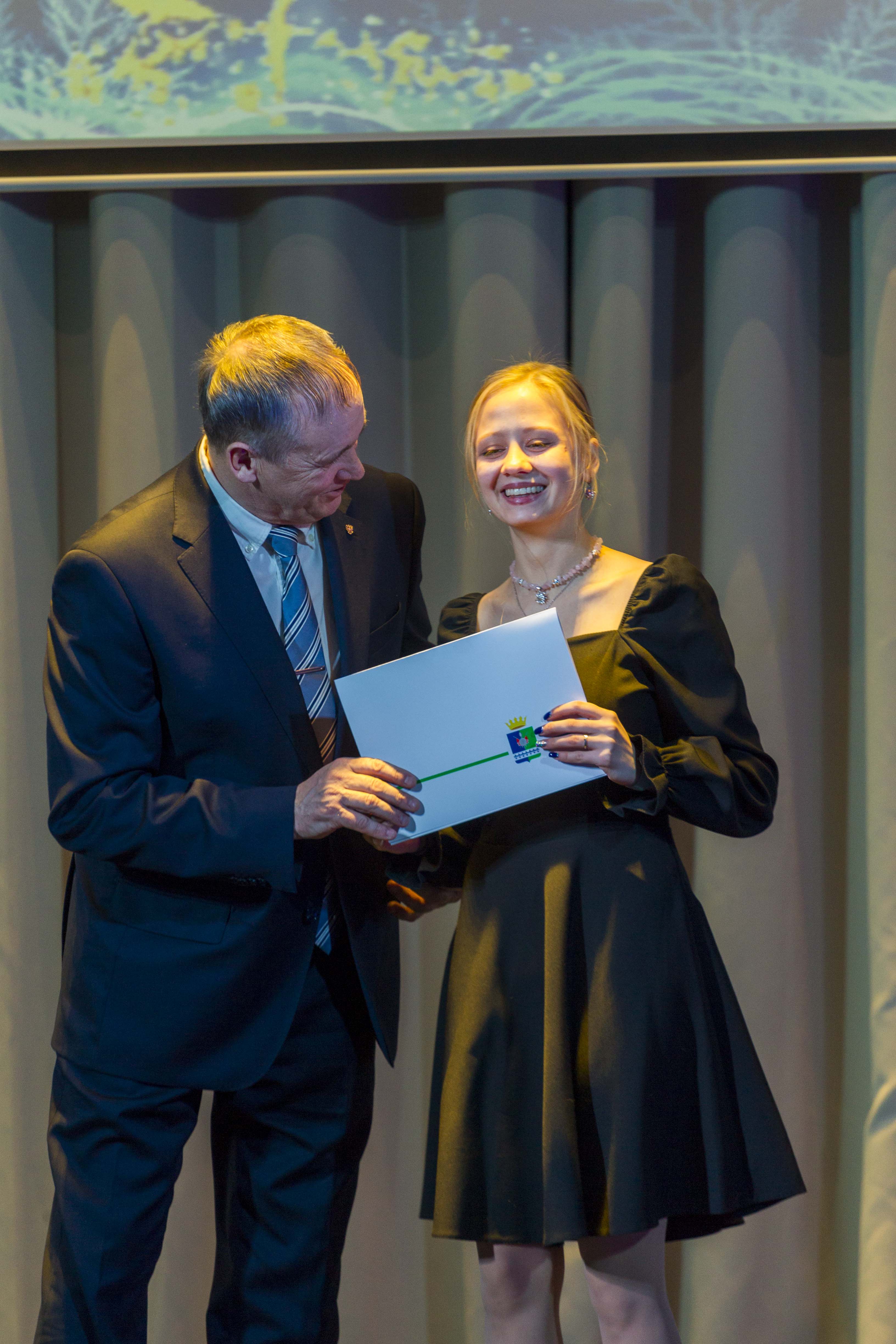 Около 70 школьников из Тобольского округа получили приглашение на традиционную ёлку главы для одарённых детей, которая состоялась вчера в Малозоркальцевском клубе. Здесь собрались победители олимпиад и конкурсов, активисты школьного движения, спортсмены и творческие увлекающиеся натуры. Сегодня им, увлечённым, активным, подающим надежды, позитивным и успешным- все лавры! Незадолго до открытия праздника виновницей торжества оказалась шестилетняя Зарина Алеева из Ворогушинского поселения. Именно её шарик с заветным желанием снял первым накануне с «Ёлки желаний» , установленной в конференц –зале администрации округа глава Андрей Ходосевич. А какой же Новый год без чудес и волшебных подарков! - в это верят и взрослые. И как настоящий волшебник, глава постарался исполнить желание девочки, которая очень любит куклы. Сияющие глаза Зарины выдают её радость и восторг. Не остался без внимания и её старший брат, кадет, ученик 6 класса Тюменского кадетского училища Володя, который получил сладкий набор. Удивительно к лицу мальчику его кадетская форма, о которой, по словам мамы Олеси, он мечтал ещё со второго класса. Затем праздник переместился в зрительный зал, где глава округа поздравил детвору и их педагогов, родителей с наступающим Новым годом и каникулами. -Вот и подошёл к концу 2025 год, и мы собрались здесь, чтобы подвести его итоги, отметить лучших- сказал он.- Конечно, выбрать из 400 лидеров было нелегко, и награду получат самые – самые. Но скажу, что у остальных всё ещё впереди, успехи, победы, достижения. А мы, в свою очередь, будем поддерживать все ваши начинания и задумки. Глава вручил Благодарности за отличные успехи в учёбе, активную жизненную позицию и упорство ученице 11 класса Дегтярёвской школы Алёне Даниловой, десятикласснице Бизинской школы Елизавете Бакшеевой. Замечательный музыкальный подарок- попурри песен на новогоднюю тематику подготовили для юных талантов артисты вокальной группы «Зазеркалье» из Тобольска. Новогодний хоровод закружился затем у ёлки, где участников ждало театрализованное представление, встреча с Дедом Морозом. В играх и конкурсах, весёлых эстафетах и состязаниях с весельем, смехом и азартом участвовали и самые юные участники ёлки и старшеклассники. Финиш года подарил яркие незабываемые впечатления и детворе и взрослым, и пусть таких мгновений будет как можно больше в наступившем году, пусть он будет полон радости открытий, сотворчества, узнавания нового, движения вперёд! Клара Ларина фото Тимура Карымова | |