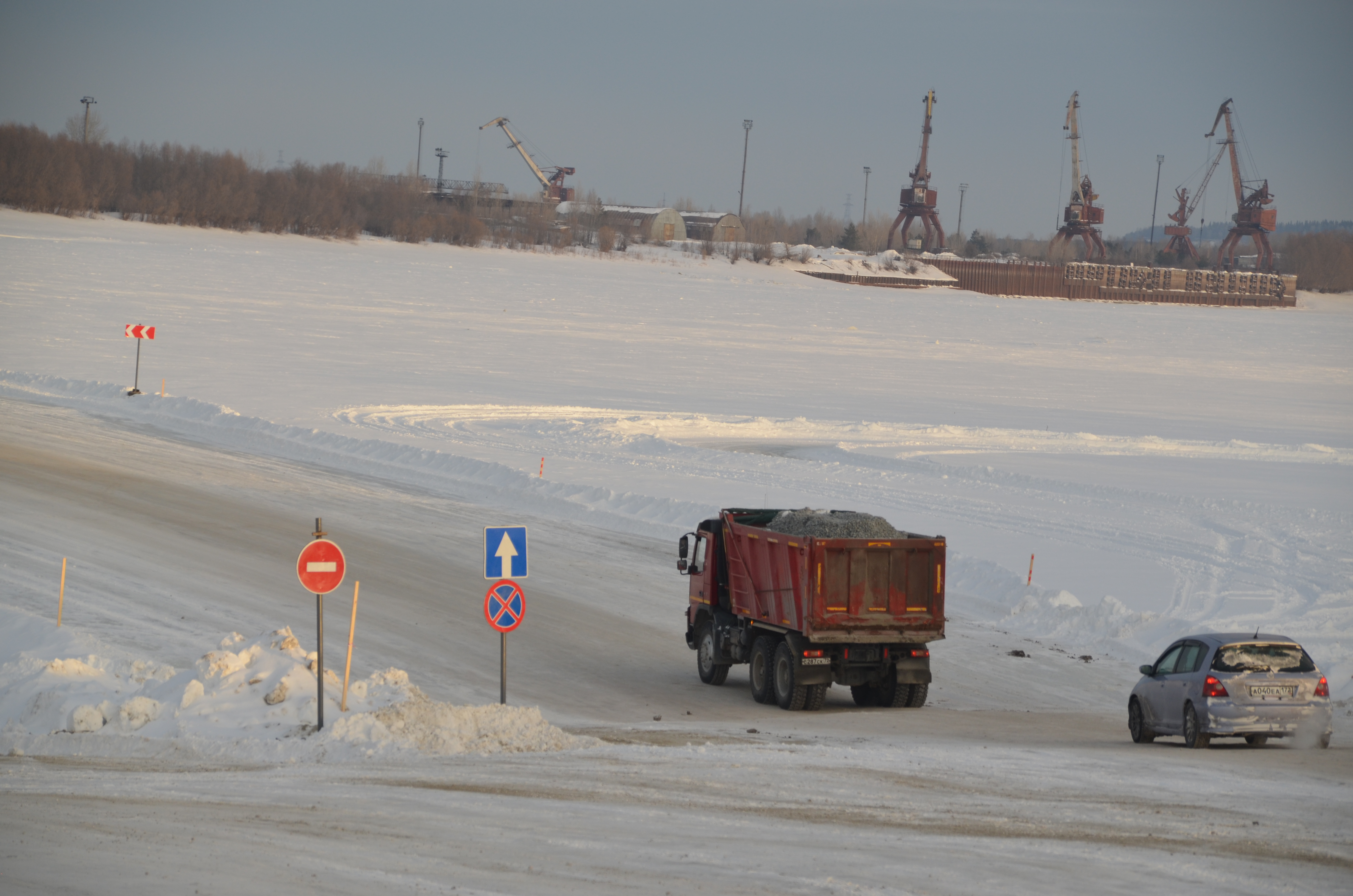 В субботу с 10 часов утра на ледовой переправе будет понижена грузоподъёмность – установят знак 30 т.